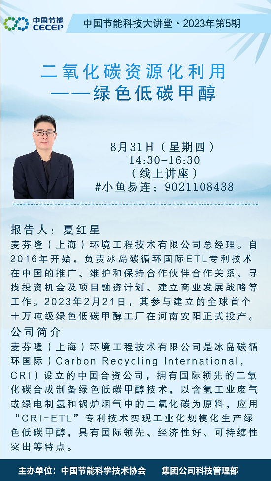 為加強(qiáng)綠色低碳技術(shù)交流,促進(jìn)戰(zhàn)略性新興領(lǐng)域和行業(yè)前沿領(lǐng)域產(chǎn)業(yè)技術(shù)合作,集團(tuán)公司科技管理部、中國(guó)節(jié)能科協(xié)特邀請(qǐng)麥芬?。ㄉ虾#┉h(huán)境工程技術(shù)有限公司(以下簡(jiǎn)稱(chēng)麥芬隆公司)總經(jīng)理夏紅星先生于2023年8月31日作科技大講堂專(zhuān)題講座。現(xiàn)將有關(guān)事項(xiàng)通知如下: